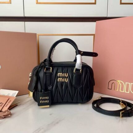 Miu Miu Arcadie Matelasse Lambskin Leather Bowling Tote(19x13x6cm)