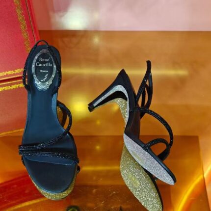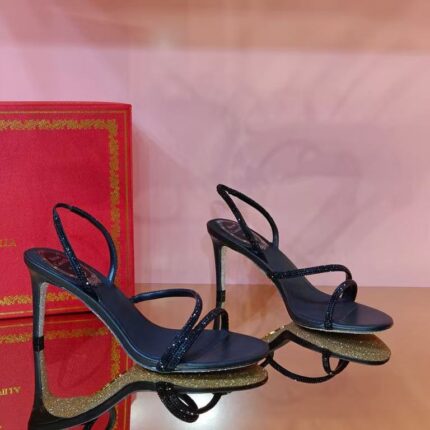 Rene Caovilla IRINA series satin pointed rhinestone diagonal strap high heel women’s sandals