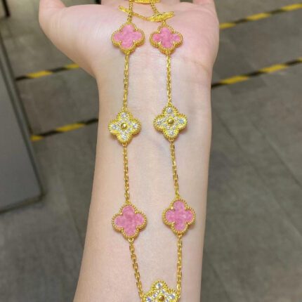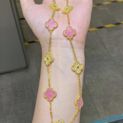 Van Cleef & Arpels Yellow Gold 10-Flower Rose Stone Diamond Necklace