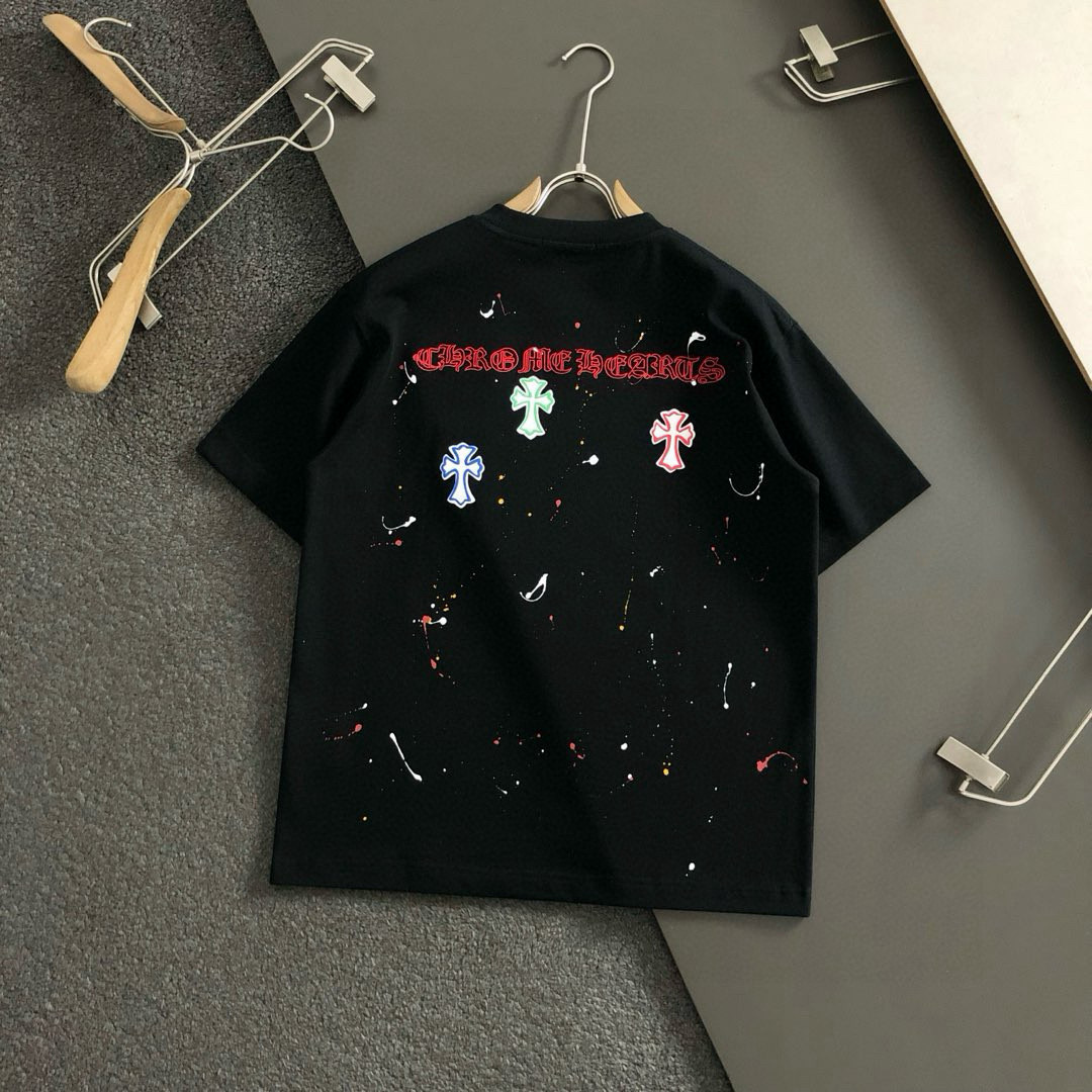 Chrome Hearts classic cross Sanskrit ink-splashed print embroidered short-sleeved T-shirt
