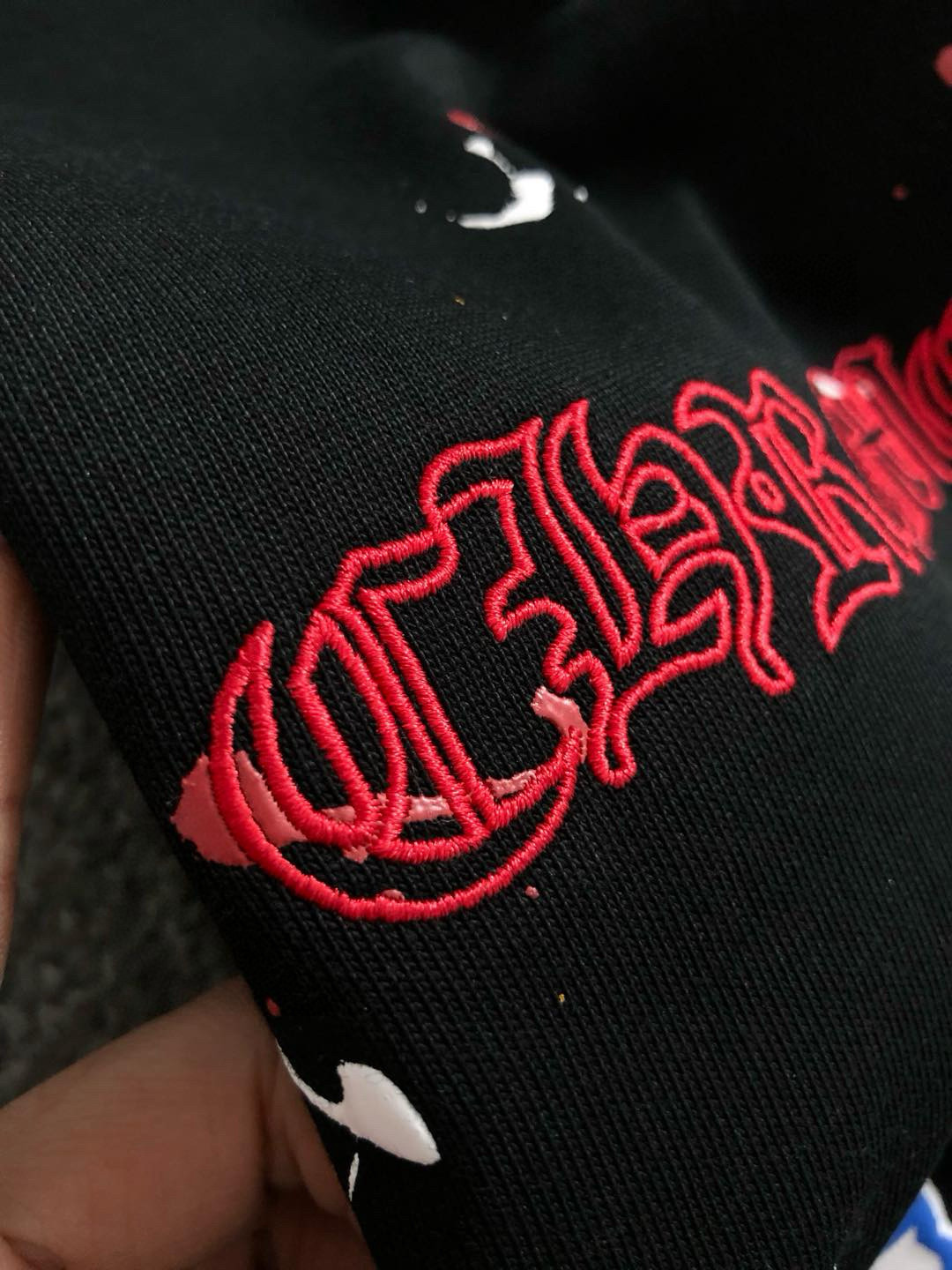 Be the first to review “Chrome Hearts classic cross Sanskrit ink-splashed print embroidered short-sleeved T-shirt” Cancel reply