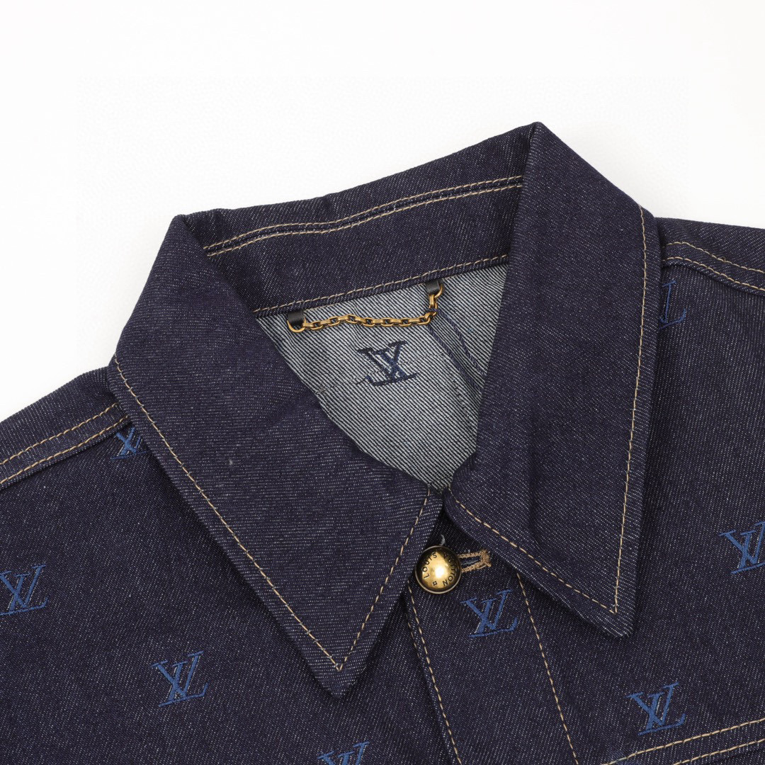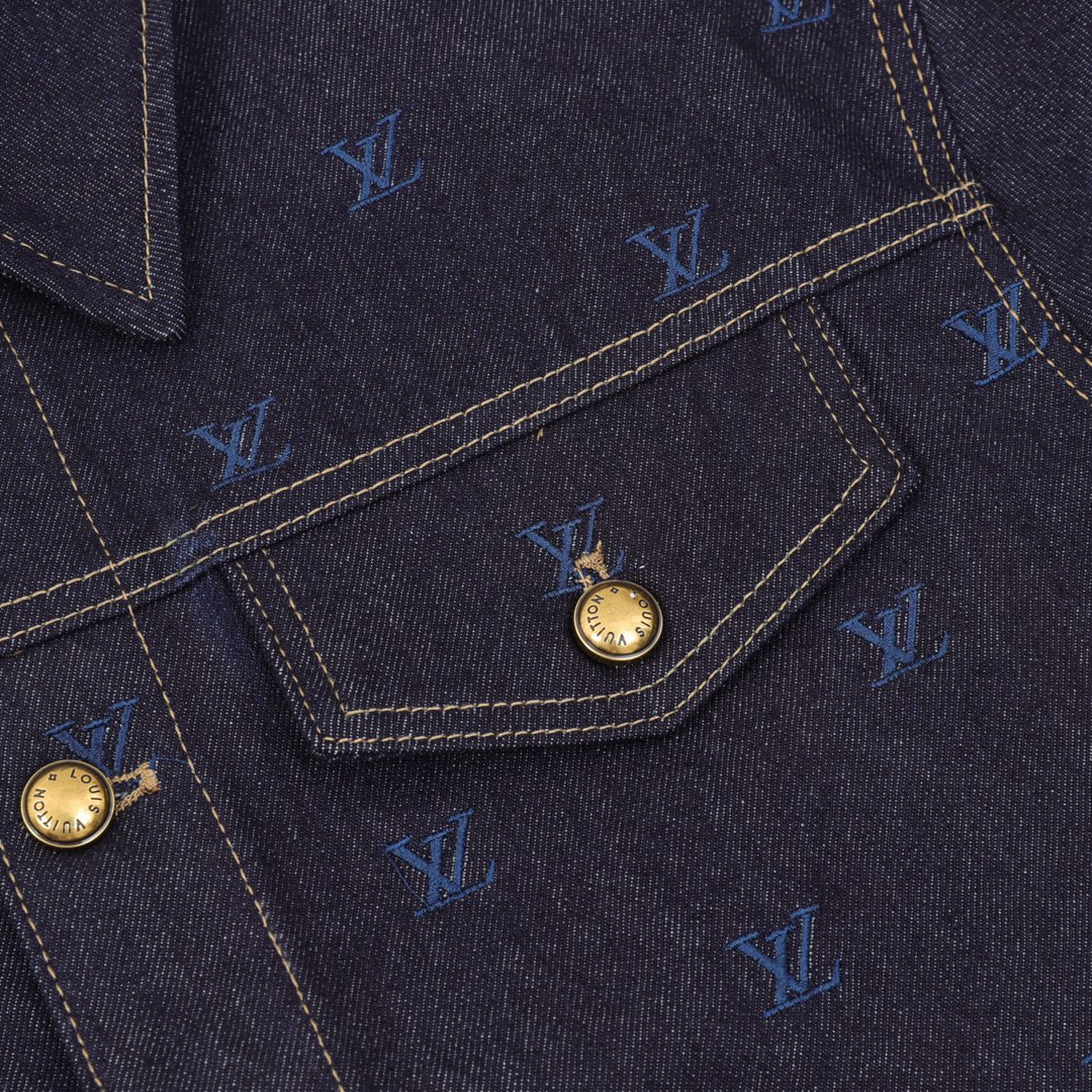 Home New Arrivals Louis Vuitton blue logo embroidery denim jacket with gold buttons