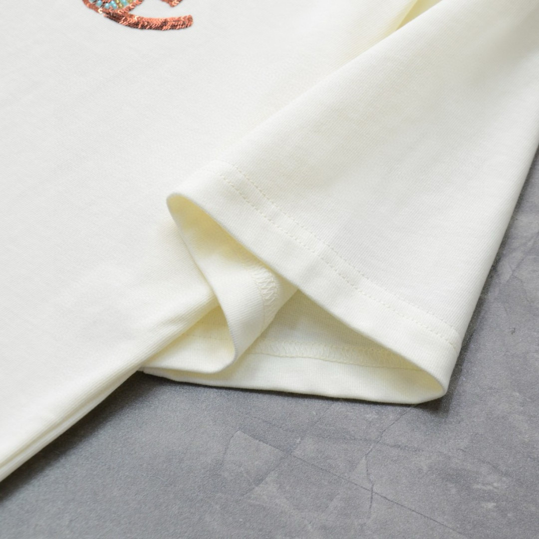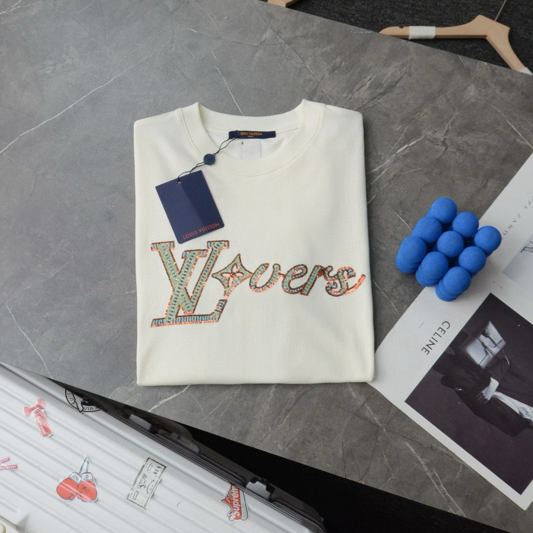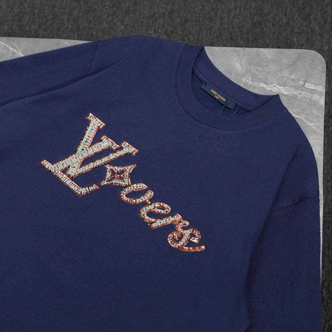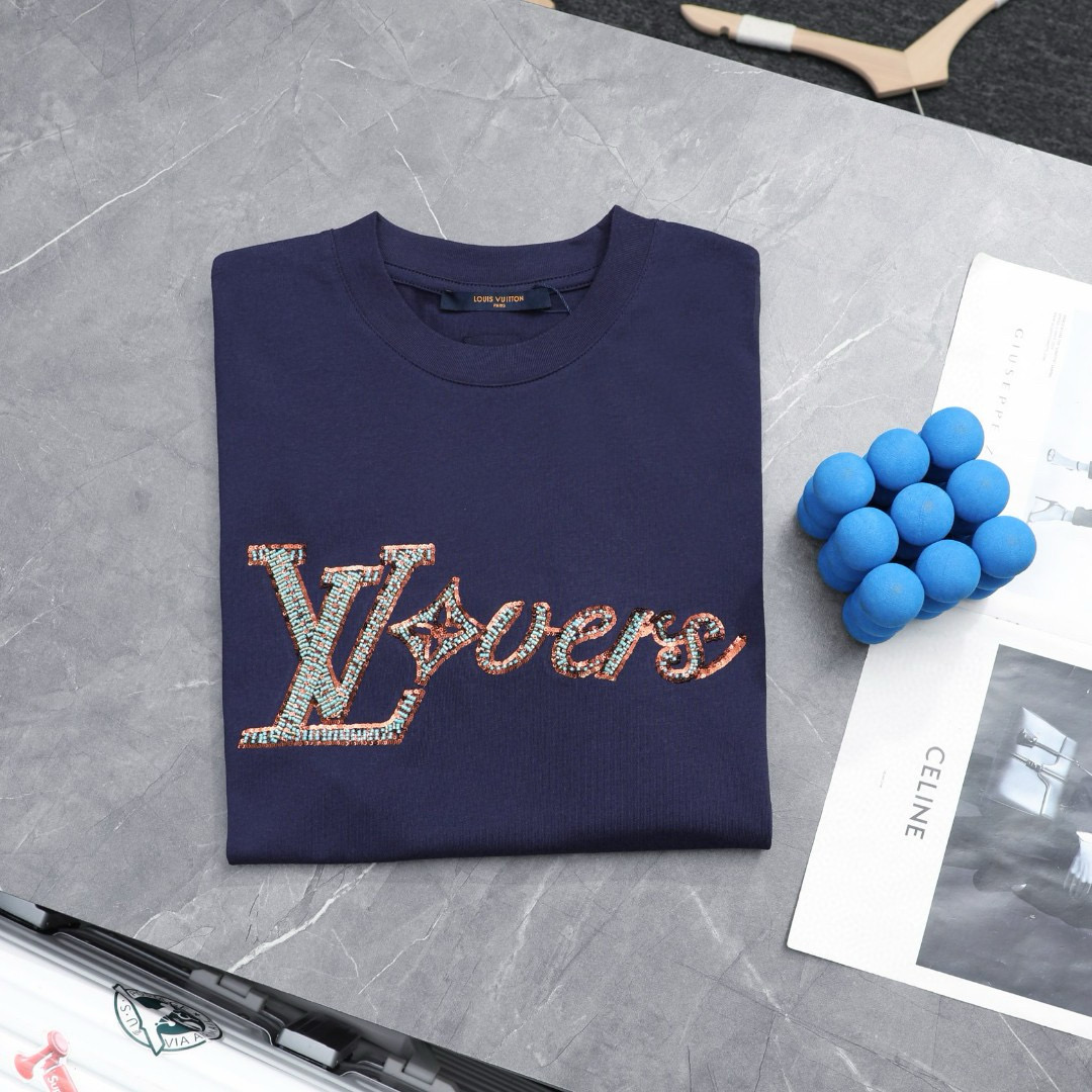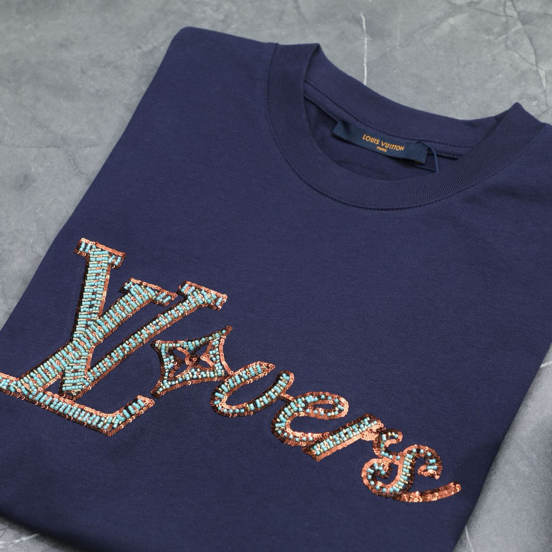 Home Clothes Louis Vuitton hand-beaded embroidered crew neck short-sleeved T-shirt
