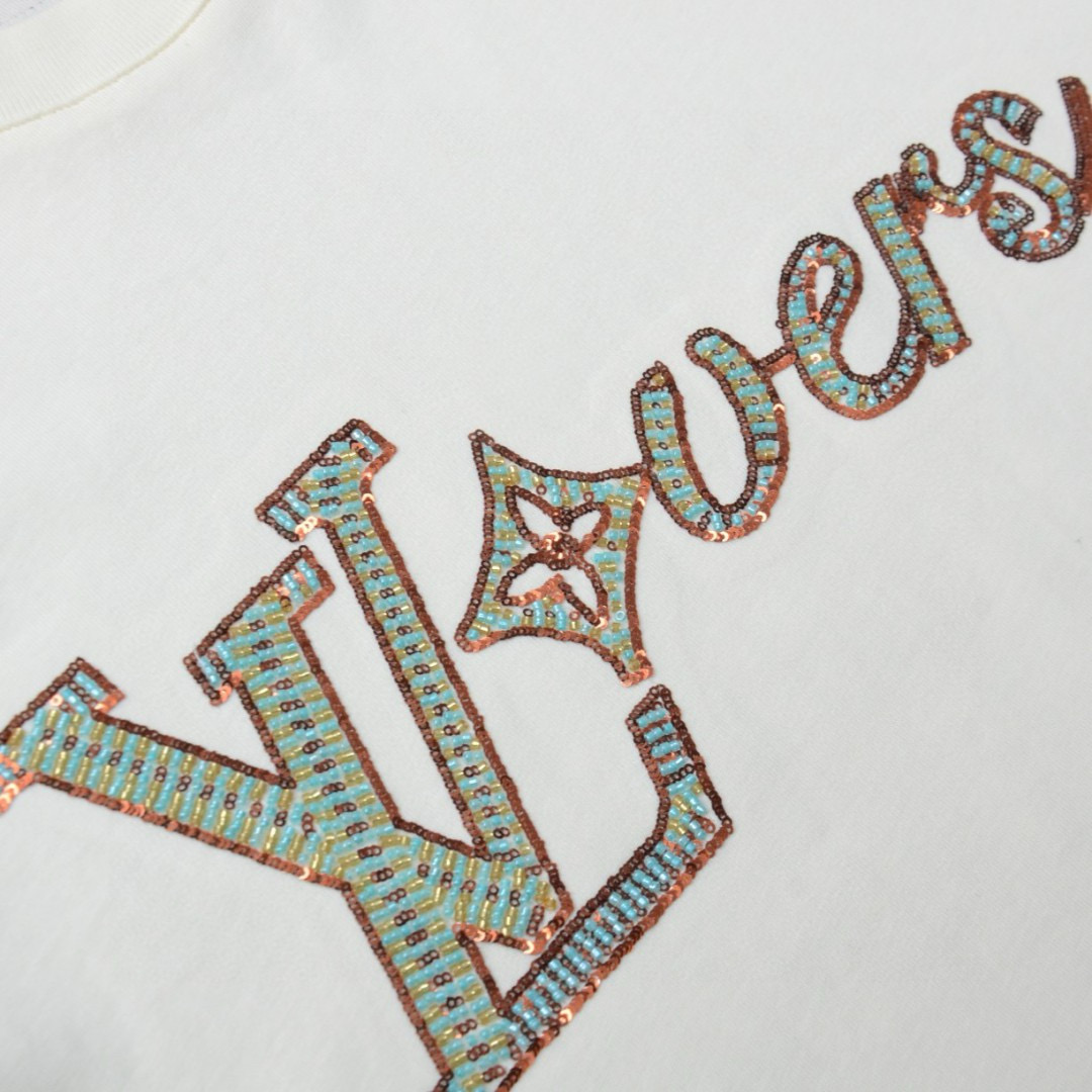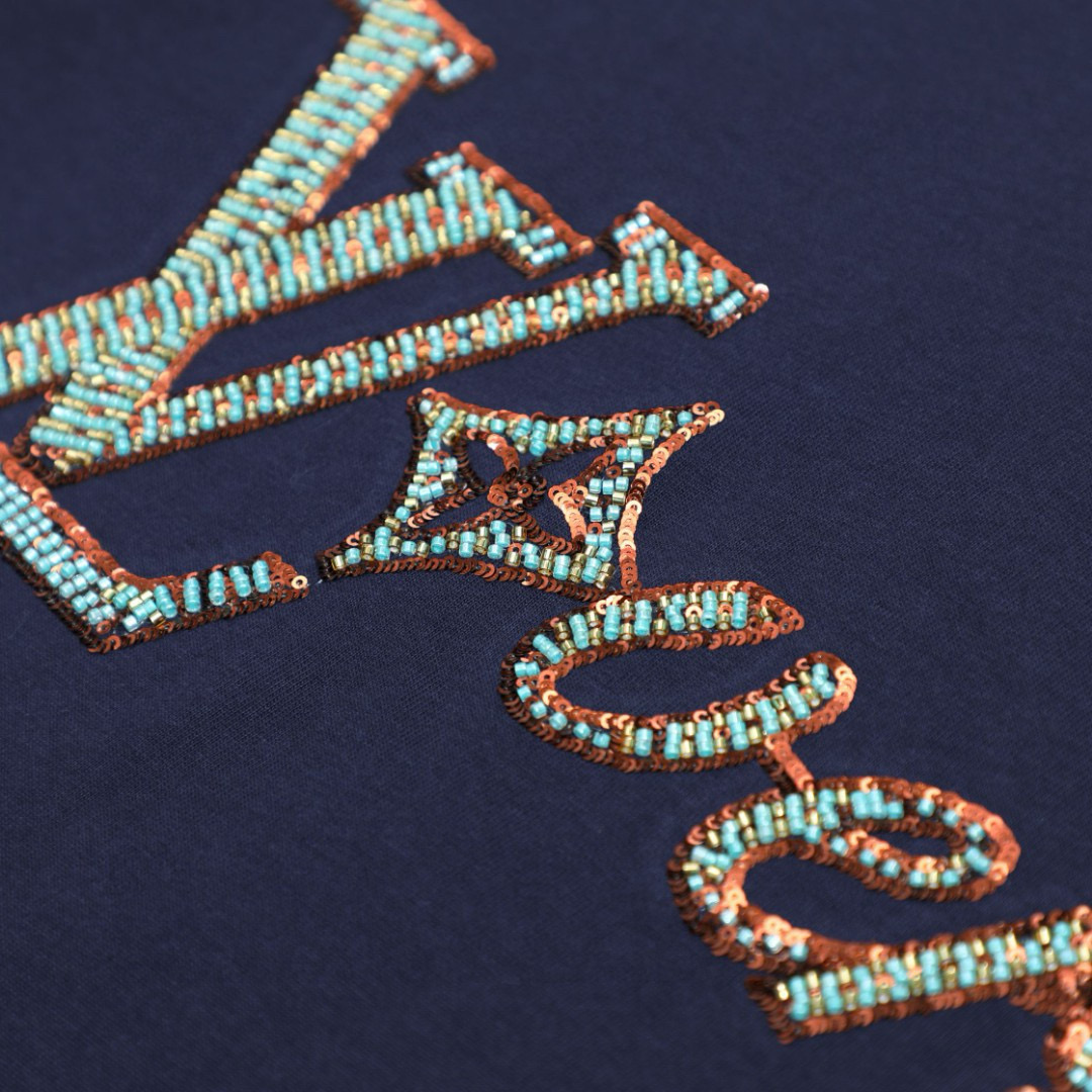 Louis Vuitton hand-beaded embroidered crew neck short-sleeved T-shirt