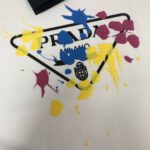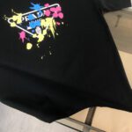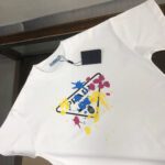 Prada patchwork letter print metal triangle logo short-sleeved T-shirt $100.00 Original price was: $100.00.$50.00Current price is: $50.00.