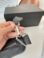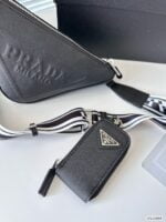 Prada Triangle bag in this series of the most “protagonist” of a bag, I think is the cutest explosive table of the new triangle bag. This time, not only the logo, but also the shape of the handbag is triangular, so simple and special design is very Prada style. It has the appearance level is also creative, daily out of the street and often back bags to do overlap, beautiful and interesting. Size: 28 14 Item number 23899