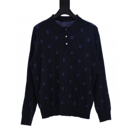 Louis Vuitton Monogram Allover Jacquard Wool Polo Sweater